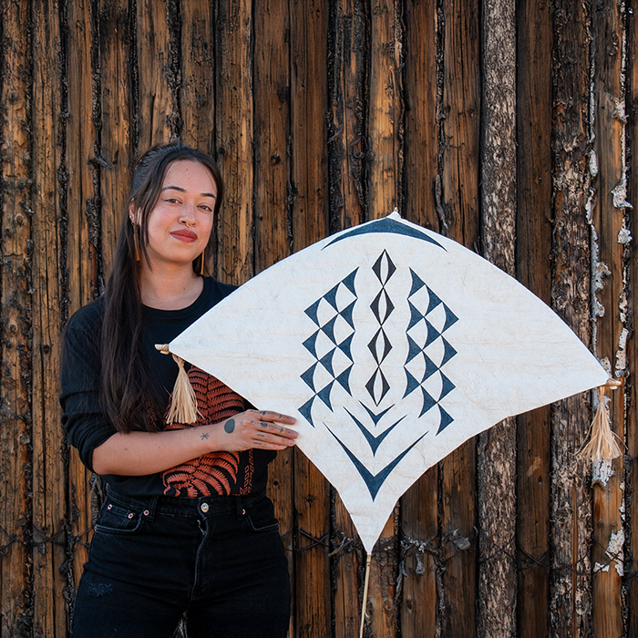 Lehuauakea holds Lupe Hīhīmanu (Manta Ray Kite). Photo by Laura Ulanova
